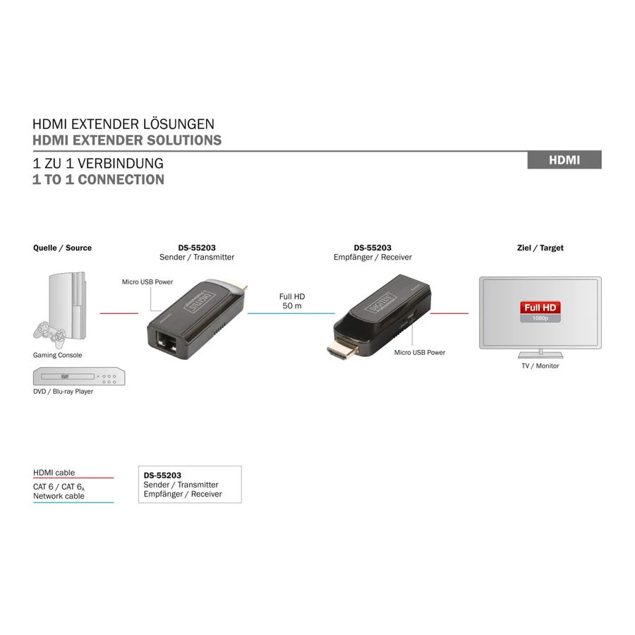 - CAT 6/6A/7 kábellel akár 50 m-re is kiterjeszti a Full HD videotartalmat