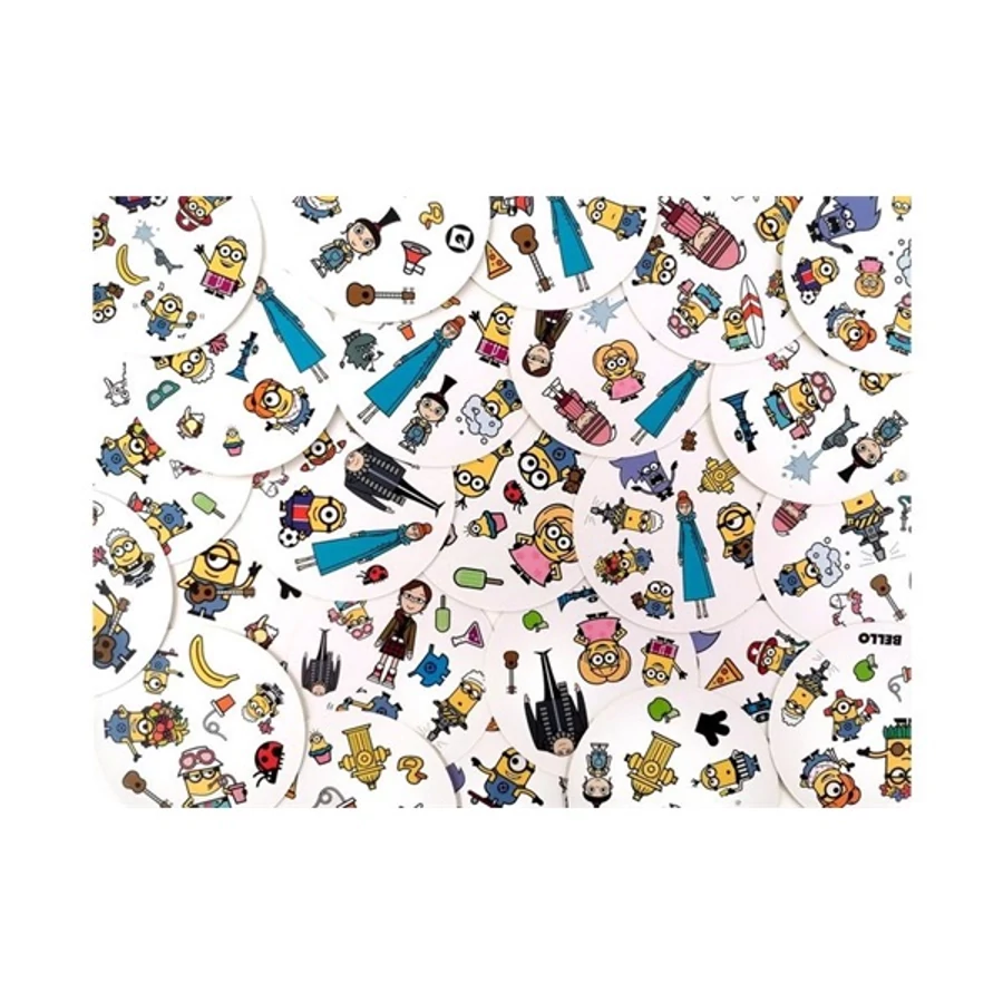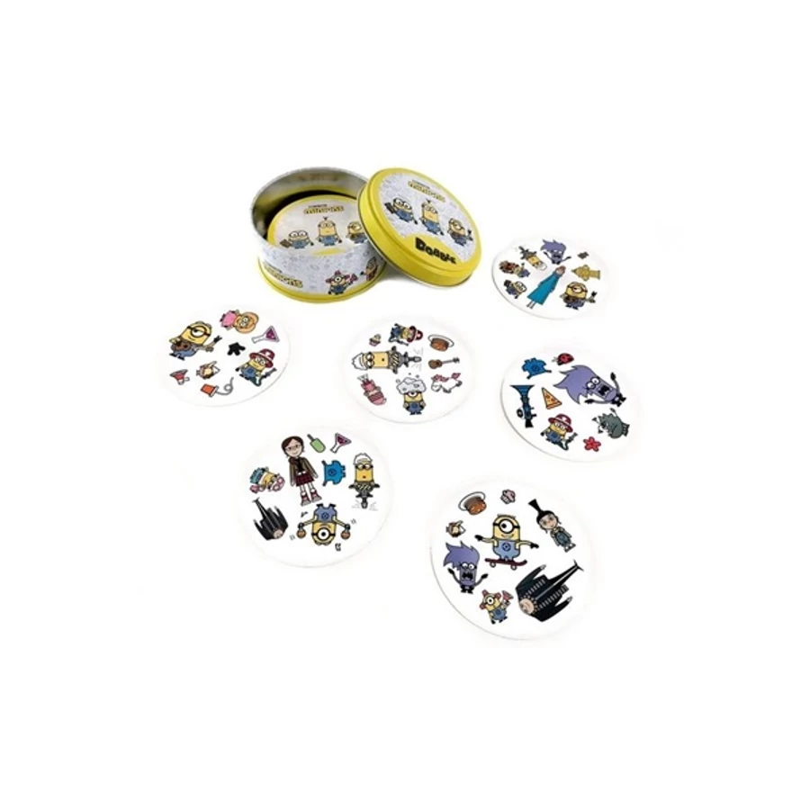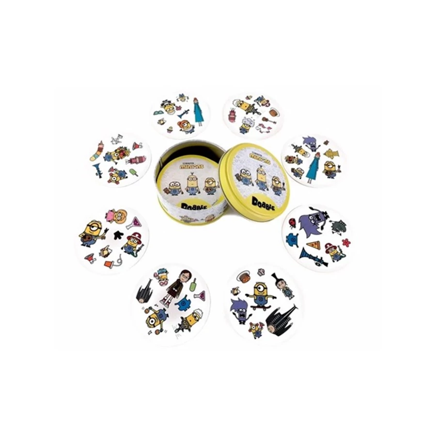 A Dobble Minyonok pörgős, zsebre vágható kártyajáték 5-féle játékváltozattal. A kártyákon 8-8 különböző képecske látható, és bármelyik két kártyán mindig van egy ugyanolyan belőlük. A játékosok feladata, hogy a többieknél gyorsabban megtalálják a közös képeket. A koncentrációt és a reflexeket fejlesztő társasjáték.