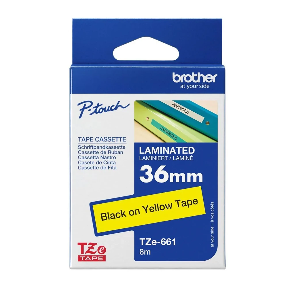 Feliratozógép szalag, 36 mm x 8 m, BROTHER, "TZe-661" sárga-fekete