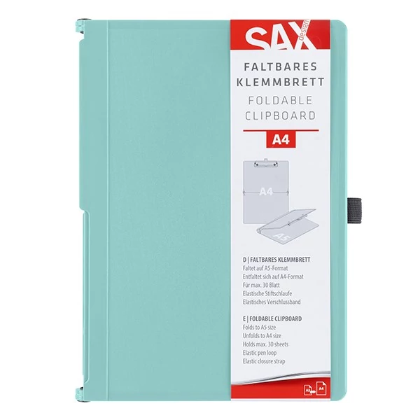 A/5 méretre összehajtható, A/4 méretre kihajtható, rugalmas rögzítőpánttal, tolltartóval felszerelt irattartó. Vízszintesen és függőlegesen is használható, 30 lapig.