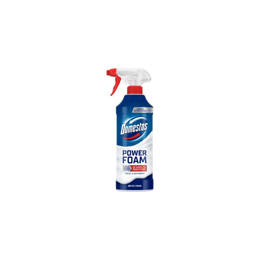 A Domestos Power Foam Arctic Fresh WC és fürdőszoba tisztító hab. Ez a 435 ml-es kiszerelésű tisztítószer hatékonyan eltávolítja a szennyeződéseket, és elpusztítja a vírusok és baktériumok 99,9%-át a WC-ben és a fürdőszobai felületeken. Speciális kialakításának köszönhetően fejjel lefelé is használható, így a nehezen elérhető helyeken is alkalmazható. A termék nem tartalmaz fehérítőt.