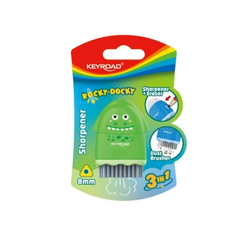Hegyező 1 lyukú radírral és porkefével Keyroad Rocky Docky vegyes színek