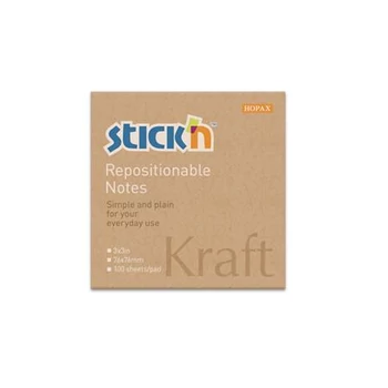 Öntapadó jegyzettömb STICK`N kraft notes 76x76mm natúr barna 100 lap