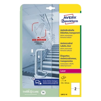 Etikett AVERY L8012-10 210x148mm antimikrobiális átlátszó 20 címke/doboz 10 ív/doboz