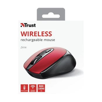 Egér, vezeték nélküli, optikai, tölthető, USB, TRUST "Zaya", piros