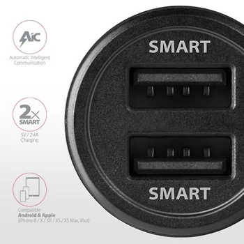 Axagon PWC-5V5 2.4A + 2.4A fekete autós töltő