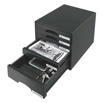 Irattároló, műanyag, 5 fiókos, LEITZ "Plus", fekete