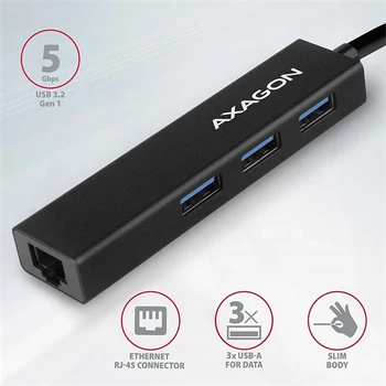 Axagon HMA-GL3A 3 portos USB3.2. Gen 2 fekete HUB Gigabit LAN porttal