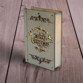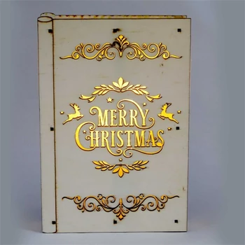 Iris Karácsonyi könyv mintás 23x16x4,5cm/meleg fehér LED-es fa fénydekoráció