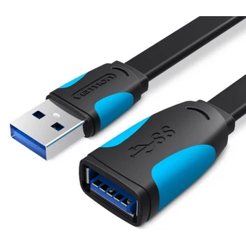 KÁBEL USB 3.0, 3m, (hosszabbító, lapos, fekete), Vention