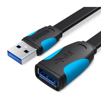 KÁBEL USB 3.0, 2m, (hosszabbító, lapos, fekete), Vention