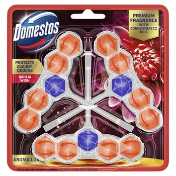 WC frissítő blokk, 3 db-os, DOMESTOS "Aroma Lux", dália és sárkánygyümölcs