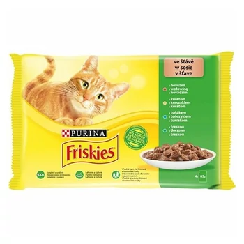 Állateledel alutasakos PURINA Friskies macskáknak marha-csirke-tonhal-tőkehal 4x85 g