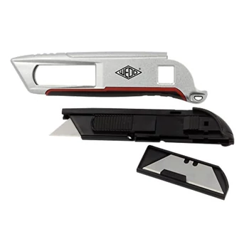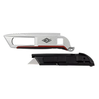 Univerzális vágókés WEDO 18 mm biztonsági 15 cm fém test gumi fogórész fém sínnel rövid pót pengével