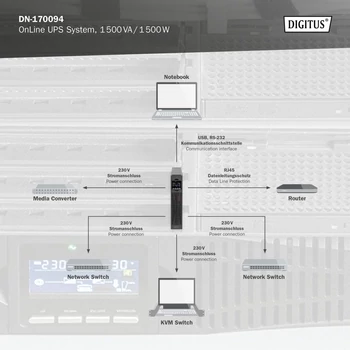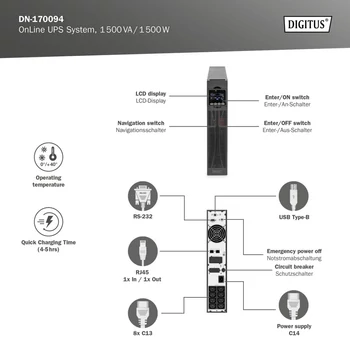 DIGITUS DN-170094 1500VA 1500W fekete online rack szünetmentes tápegység