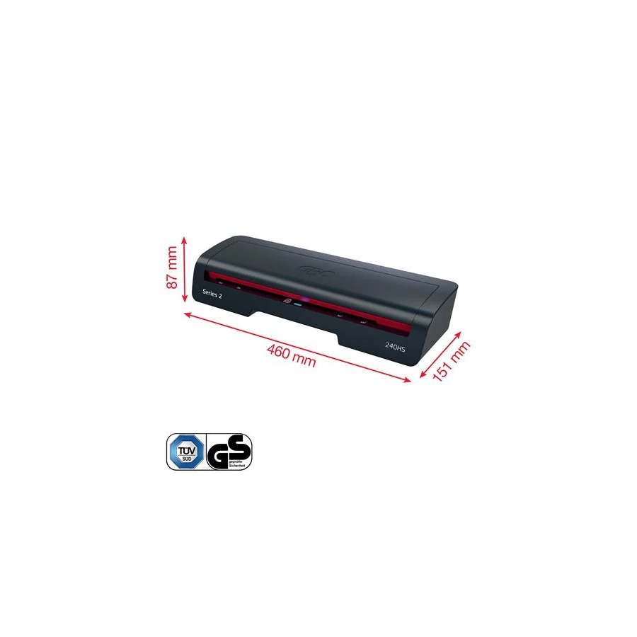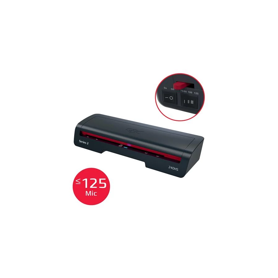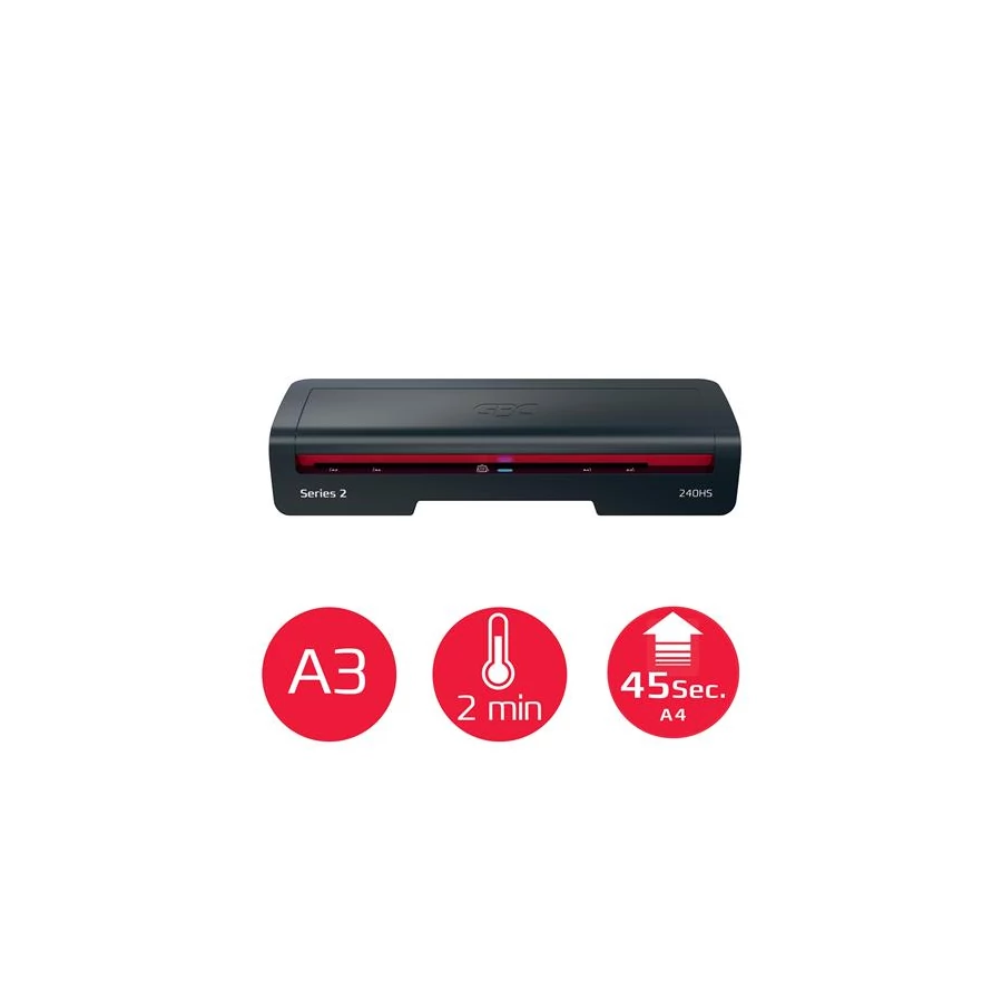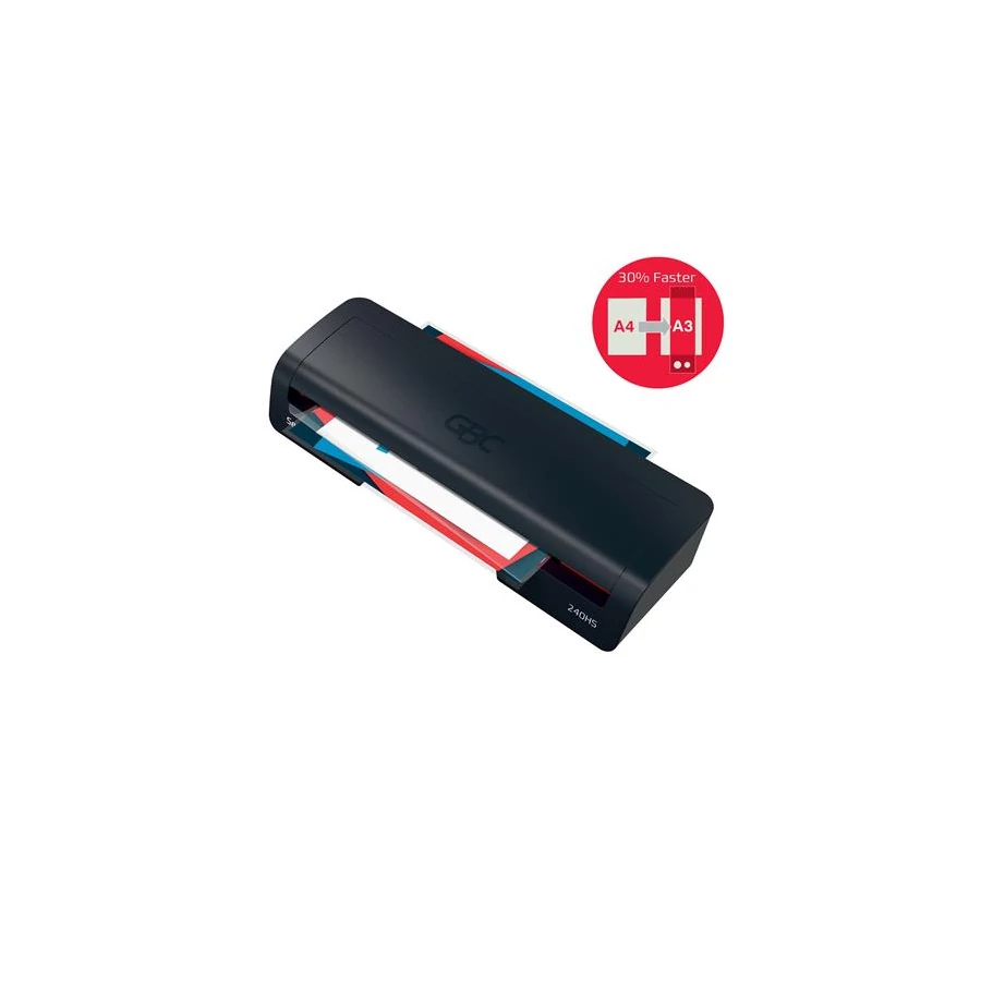 A GBC 240HS egy elegáns és hatékony megoldás a mindennapi laminálási igényekhez. A stílus és a teljesítmény szem előtt tartásával tervezett nagy sebességű A3-as laminálógép ideális otthoni vagy otthoni irodai használatra. Védje és őrizze meg fontos dokumentumait tökéletes kivitelben, minden alkalommal.
