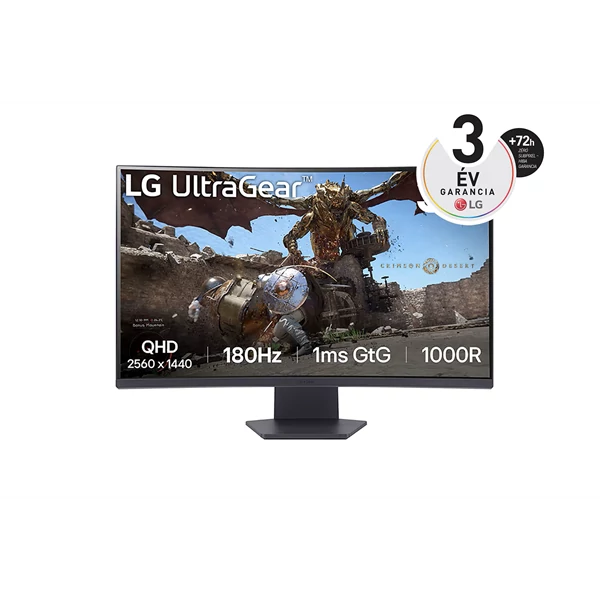 LG Monitor 32" Gamer - 32GS60QC-B (Ívelt, VA, 16:9; 2560x1440; 180Hz; 1ms; 300cd; HDMIx2; DP; FreeSync; HDR10; sRGB99%)
