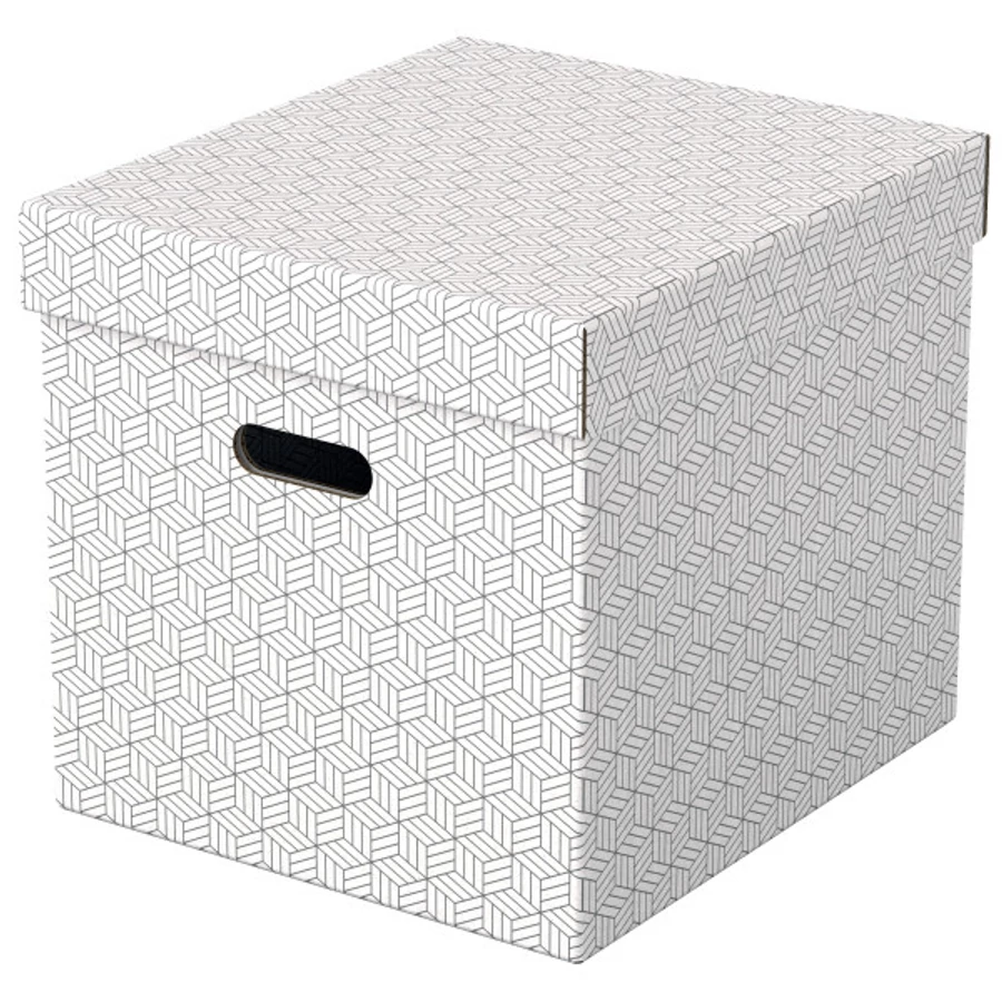 Modern, nagy méretű, kocka alakú karton tárolódobozok levehető tetővel otthoni tároláshoz.