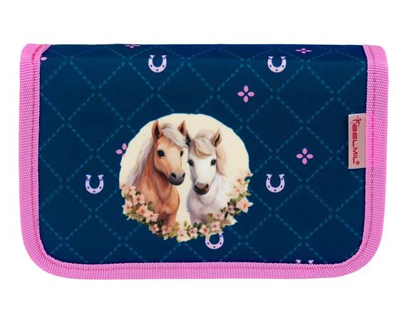 Tolltartó, klapnis, cipzáras, BELMIL "Meet your Horses", kék-rózsaszín, lovak